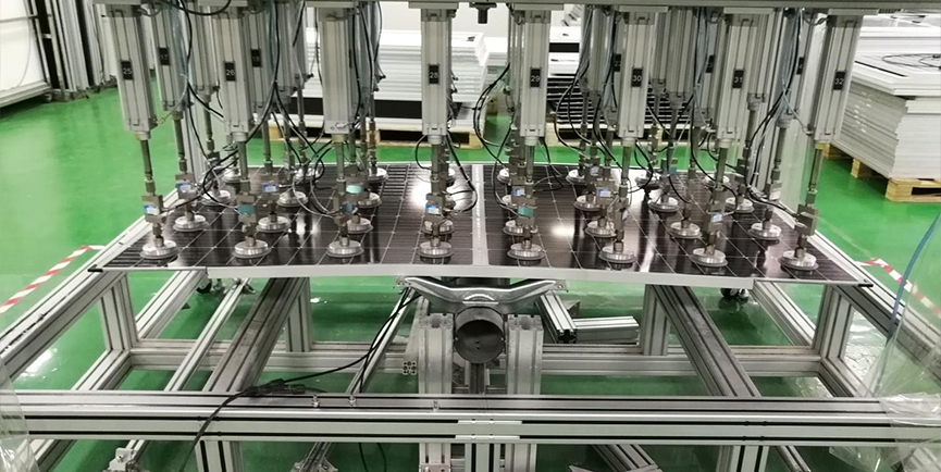 注:覆蓋主流 72/60cells 晶硅、雙玻、疊瓦、雙面、半片組件尺寸施力中心軸間距、邊距:按 IEC 62782:2016 規(guī)定的≤20cm 設計每只氣缸帶動 1 只吸盤(吸盤直徑:100mm)