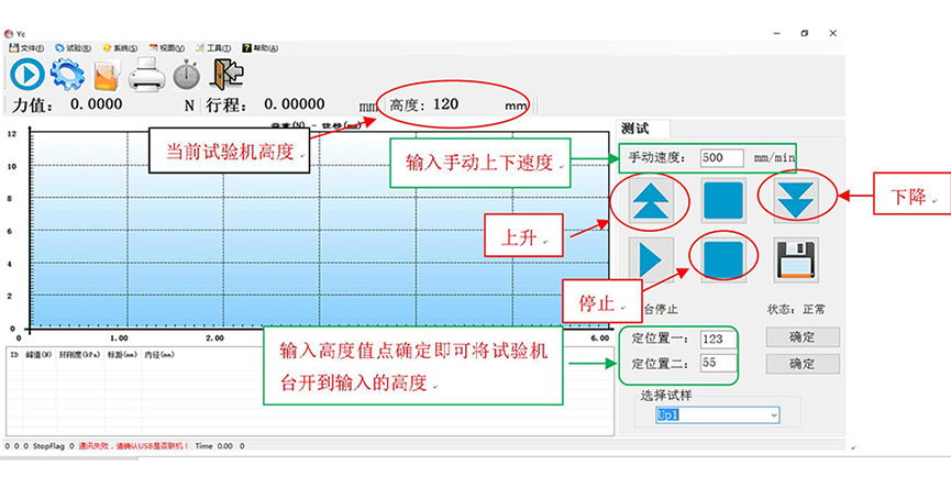 M.曲線選擇:可根據(jù)需要選擇應(yīng)力應(yīng)變、力時間、強度時間等曲線進行顯示和打?。?/p>