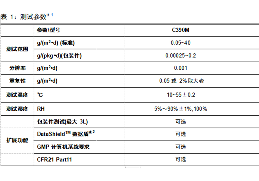 注 1:表中各項參數(shù)是在 Labthink 實驗室、由專業(yè)操作人員,依據(jù)相關(guān)實驗室環(huán)境標(biāo)準(zhǔn)的要求和條件測量得出。