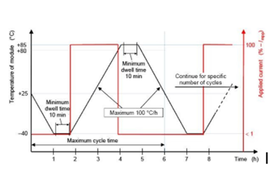 熱循環(huán)試驗中從-40°C 到 80°C 加熱段,設置連續(xù)的 Isc 電流流經(jīng)組件。